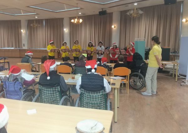 | 12月24日(水)〜12月25日(木)、ご利用者の方々に少しでも明るい気持ちで今年1年を締めくくっていただくため、当施設で「クリスマス会」を催しました。 クリスマスの飾りつけがされた施設内で、クリスマスのランチと素晴らしい音楽を聞いていただきました。 |