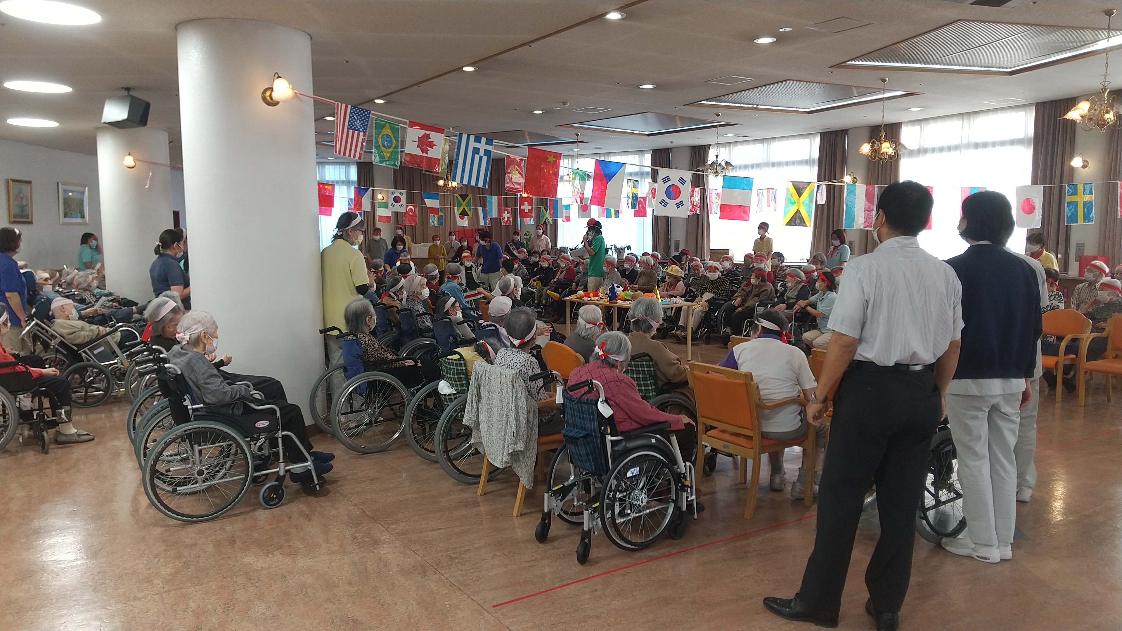 | 12月23日(木)〜12月24日(金)、コロナ禍ではありますが、ご利用者の方々に少しでも明るい気持ちで今年1年を締めくくっていただくため、当施設で「クリスマス会」を催しました。いつも以上に煌びやかな飾りつけを行い、23日のデイケアのご利用者には、「クリスマス特製ランチ」をご提供し、24日には、2年ぶりに各フロアのご利用者が1Fの大ホールに一同に会し、「クリスマスディナー」をお楽しみいただきました。徹底した感染対策をしながらのご提供となり、通常のご家族のご参加や、ゲストによる生演奏のステージはなかったとはいえ、多くのご利用者が笑顔で楽しんでいただけたことを職員一同、安堵しております。 今年もまた、当施設でも、ご利用者やご家族の方に感染防止に関する様々なお願い事をすることとなり、ご不便とご迷惑をおかけすることとなりました。来年も新型コロナウイルスとの戦いを強いられるかもしれませんが、当施設といたしましては、ご利用者の皆様方がお元気で楽しくお過ごしいただけるよう、努めてまいります。感染防止対策の中でも、明るい気持ちを持ち続け、来年も良い一年いたしましょう!! |